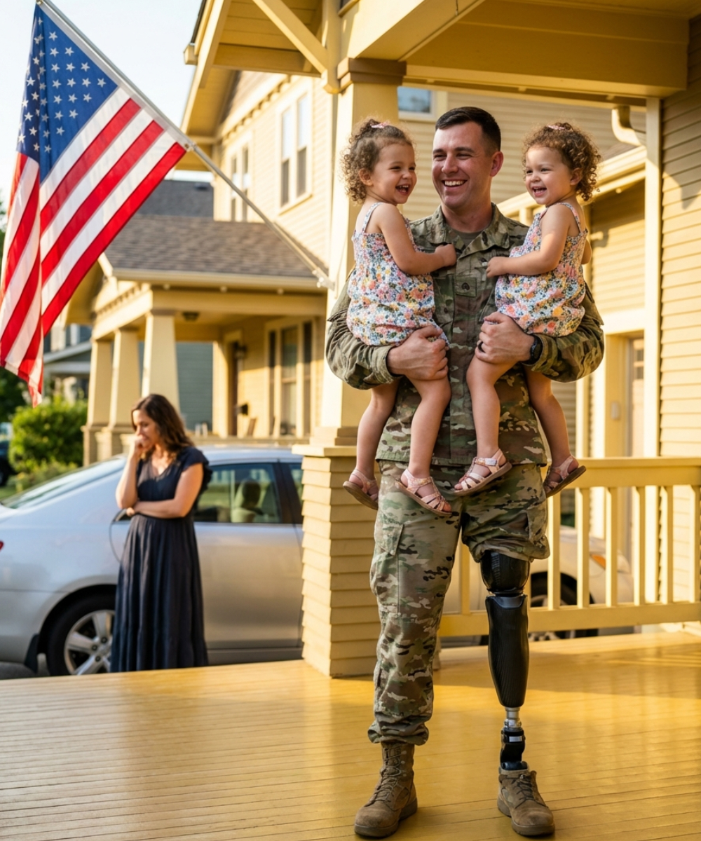 I climbed the stairs, carbon fiber biting into my stump. In the nursery, my mother sat in a rocking chair, coat still on, holding one baby while the other screamed in the crib. She didn’t cheer; she sobbed, eyes dropping to my prosthetic.