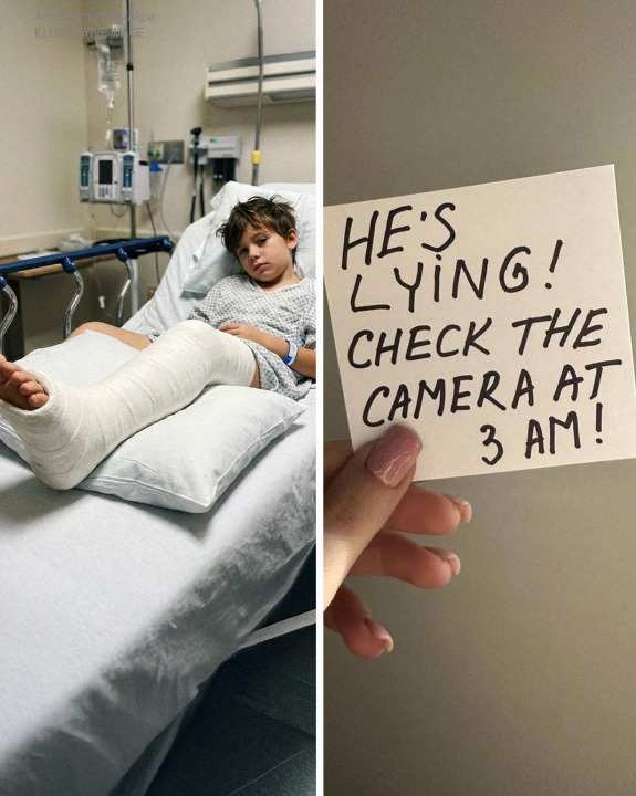 When our son broke his leg, my ex-husband insisted it was nothing more than a freak accident. I wanted to believe him. But later that night, a charge nurse quietly slipped me a note that read, “He’s lying. Check the camera at 3 a.m.” When I later entered the security room, I discovered a truth that left me shaken.