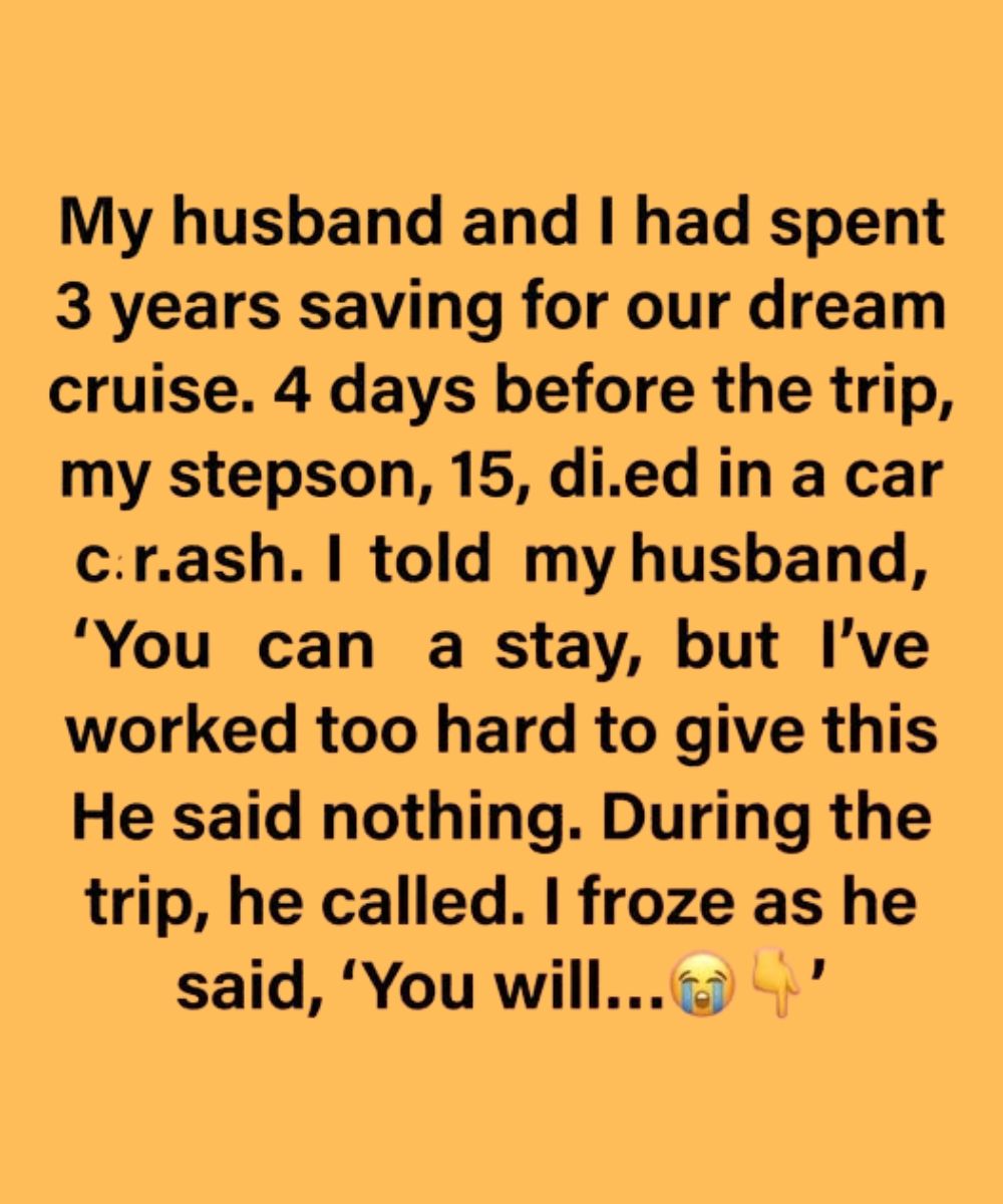 A sudden phone call brought devastating news—her husband’s teenage son had died unexpectedly in a tragic accident. Grief immediately took over the household. To everyone around her, the expectation was clear: cancel the trip, stay home, and grieve with the family. But Sandra found herself in a conflict she had never truly faced before. After years of always sacrificing her own needs, she questioned whether she was ever allowed to choose herself at all.