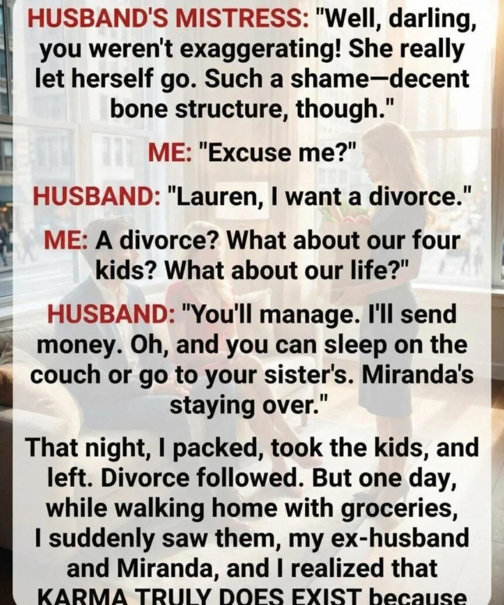 Most importantly, my children began to flourish in a calmer, more respectful environment. I came to understand that even though I didn’t choose this path, I could still walk it with strength. Then, one ordinary afternoon, groceries in hand and my mind at ease, I turned a corner—and stopped.