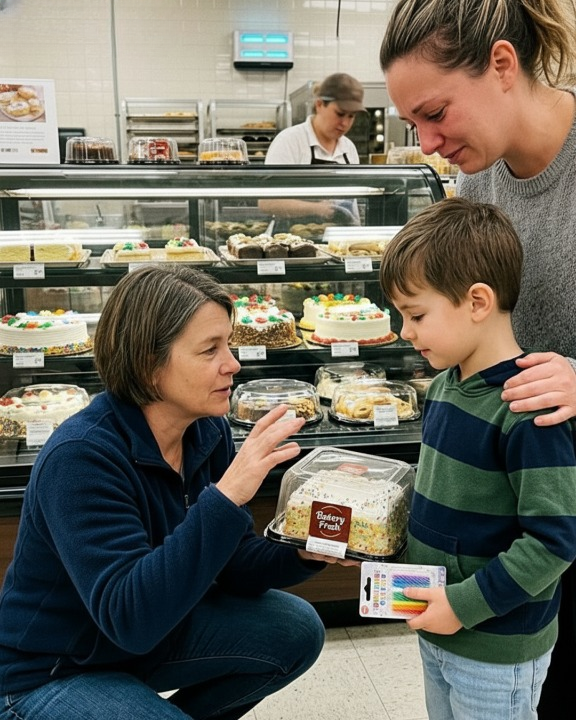 I stepped forward. “Wait, I’ve got it,” I said, handing my card to the cashier. The woman’s eyes filled with tears. “Thank you,” she whispered. “You have no idea what this means.” Olly beamed, and I smiled back: “Happy birthday, sweetheart. Every six-year-old deserves a cake!”