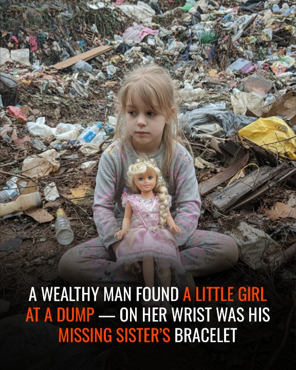What started as a simple errand turned into a life-changing moment when a wealthy man discovered a quiet little girl at a city dump wearing a bracelet connected to his family’s deepest tragedy. What she revealed next would force him to face a truth buried for decades.